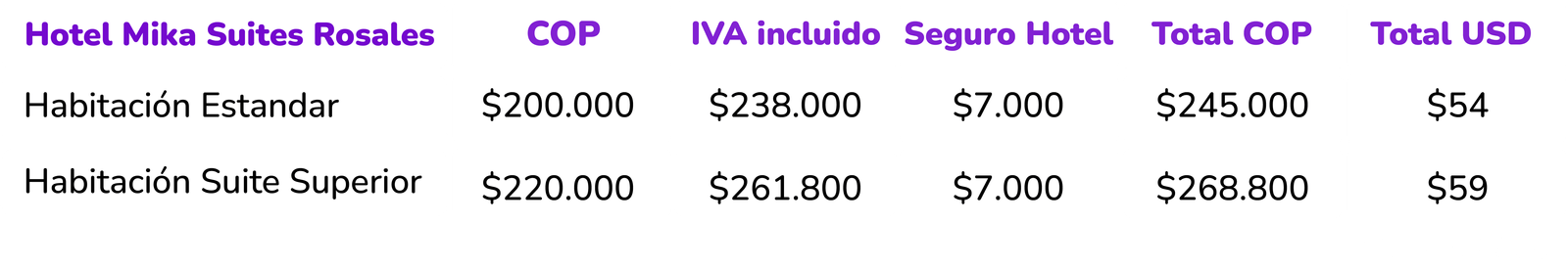 Hemos preparado y realizado una serie de convenios con hoteles en la ciudad de Bogotá en donde